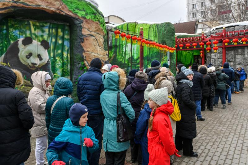 2024年3月8日,东谈主们在俄罗斯莫斯科动物园列队恭候不雅看大熊猫“喀秋莎”。新华社记者 曹阳 摄