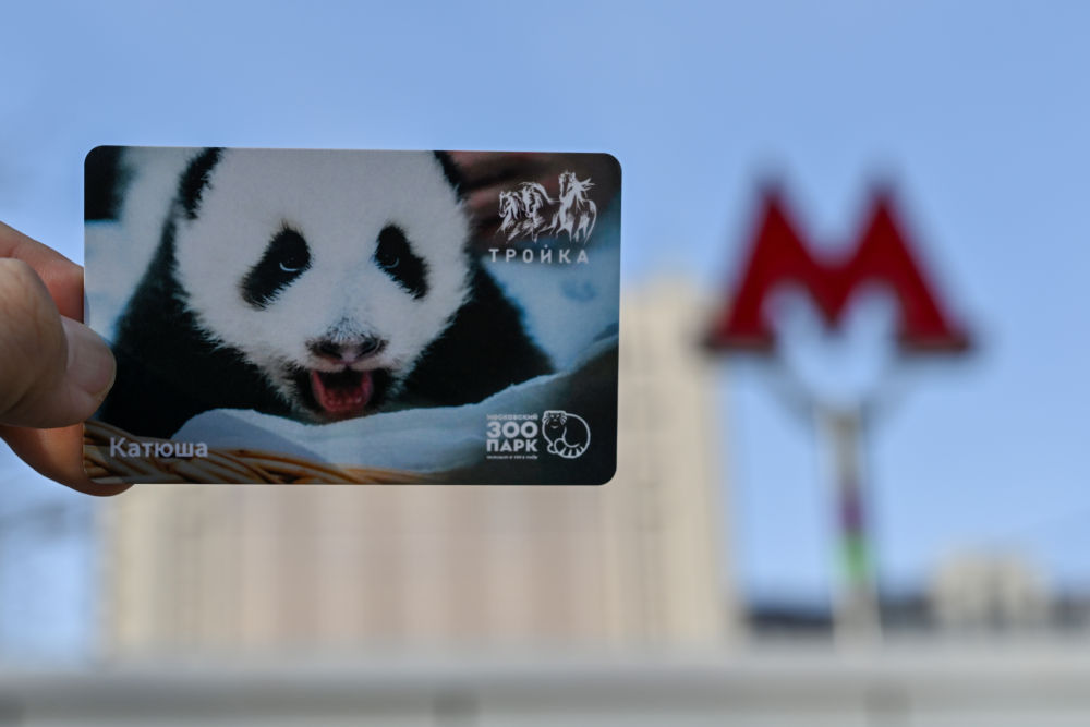 这是2024年2月3日在俄罗斯齐门莫斯科拍摄的旅俄大熊猫幼崽主题交通卡。新华社记者 曹阳 摄