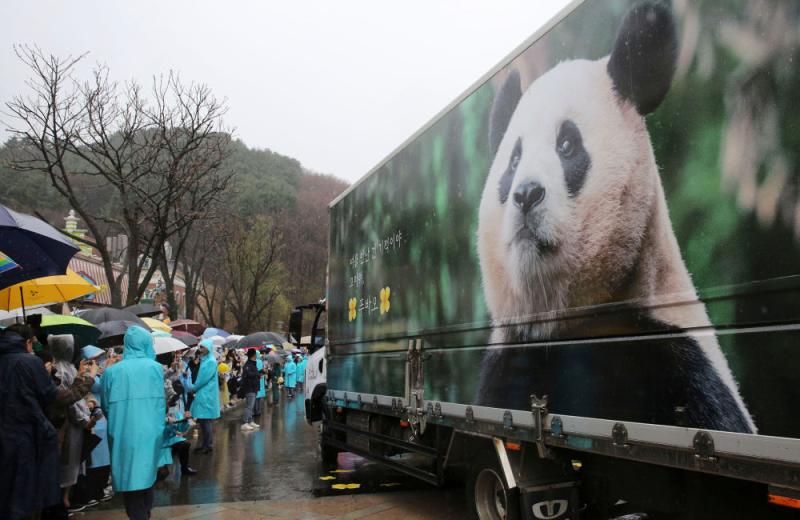 2024年4月3日,在韩国京畿谈龙仁市的爱宝乐土,东谈主们在雨中送别大熊猫“福宝”。旅韩大熊猫“福宝”当日离开位于韩国京畿谈龙仁市的爱宝乐土,踏上归国旅程。新华社记者 姚琪琳 摄