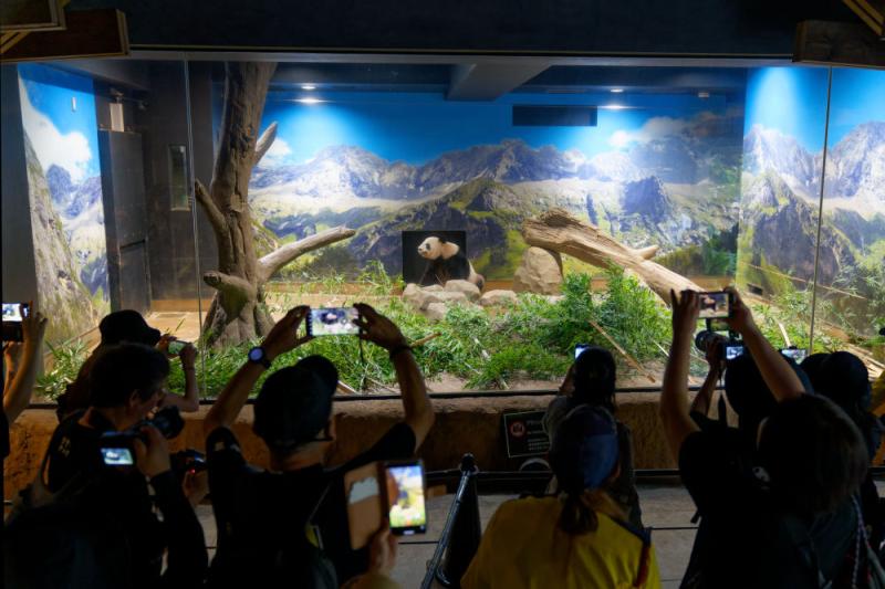 2024年9月28日,参不雅者在日本东京上野动物园拍摄眷恋,告别大熊猫“青娥”。旅日大熊猫“比力”和“青娥”9月29日上昼开拔离开日本东京上野动物园,踏上归国路径。新华社记者 张笑宇 摄