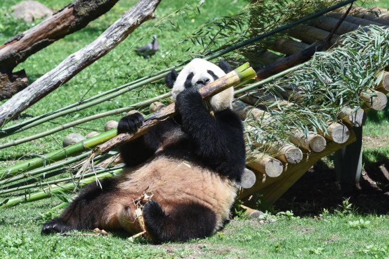 2024年5月30日,大熊猫“金喜”在西班牙马德里动物园吃竹子。进程一个月的讳饰检疫和符合期后,旅居西班牙的大熊猫“金喜”和“茱萸”于5月30日在马德里动物园厚爱与公众碰面。新华社发(古斯塔沃·巴连特摄)
