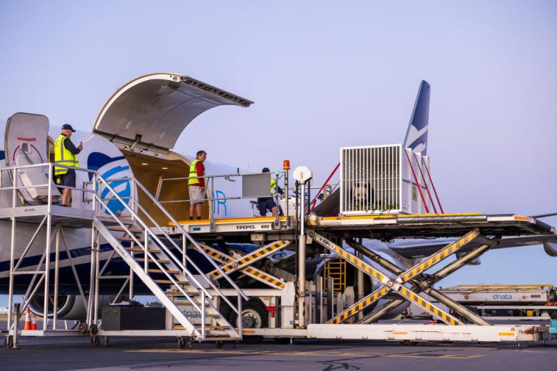 2024年11月15日,在澳大利亚阿德莱德,大熊猫被运上飞机。当日,大熊猫“网网”和“福妮”从澳大利亚南澳大利亚州阿德莱德开拔归国。新华社发(阿德莱德动物园供图)
