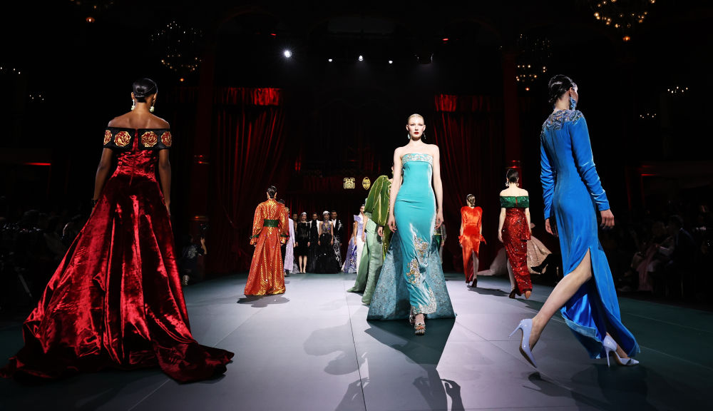 9月28日,模特在法国巴黎举行的“恭王府衣饰秀”上展示服装。聚焦选取审好意思和传统工艺的“恭王府衣饰秀”共展示48套衣饰,按春夏秋冬划为4个章节轮替展示,斡旋苗绣、锡绣、云锦等传统工艺与恭王府传统文化元素。