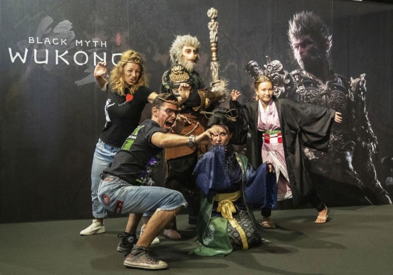 8月22日,东说念主们在德国2024年科隆国际游戏展《黑传闻:悟空》拍照区拍照。中国游戏企业积极干涉2024年科隆国际游戏展,推出的游戏产物受到国际游戏爱好者的关切和喜爱。
