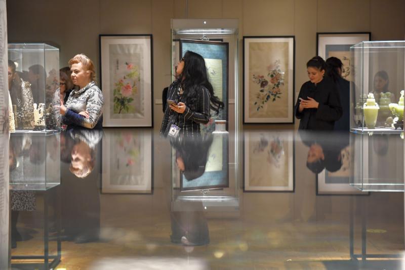 12月4日,东说念主们在俄罗斯齐门莫斯科举办的中国传统文化展上参不雅。
