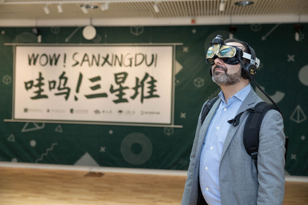 4月27日,参不雅者在瑞典齐门斯德哥尔摩体验《哇呜!三星堆》VR千里浸探索展。参不雅者不错捎带VR开采,千里浸式体验以三星堆为代表的古蜀文化。
