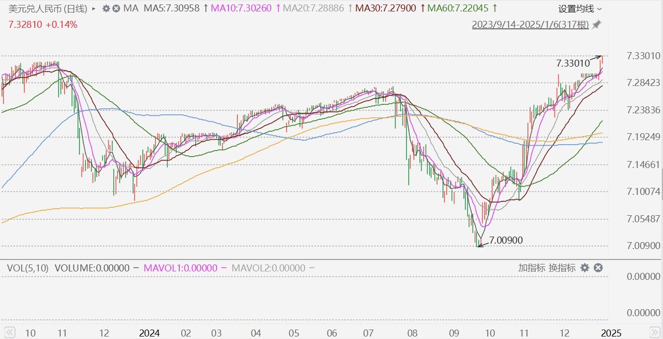 格隆汇1月6日|在岸东说念主民币兑好意思元盘中最低跌破7.33,至7.3301开云体育,创2023年9月11日以来新低。