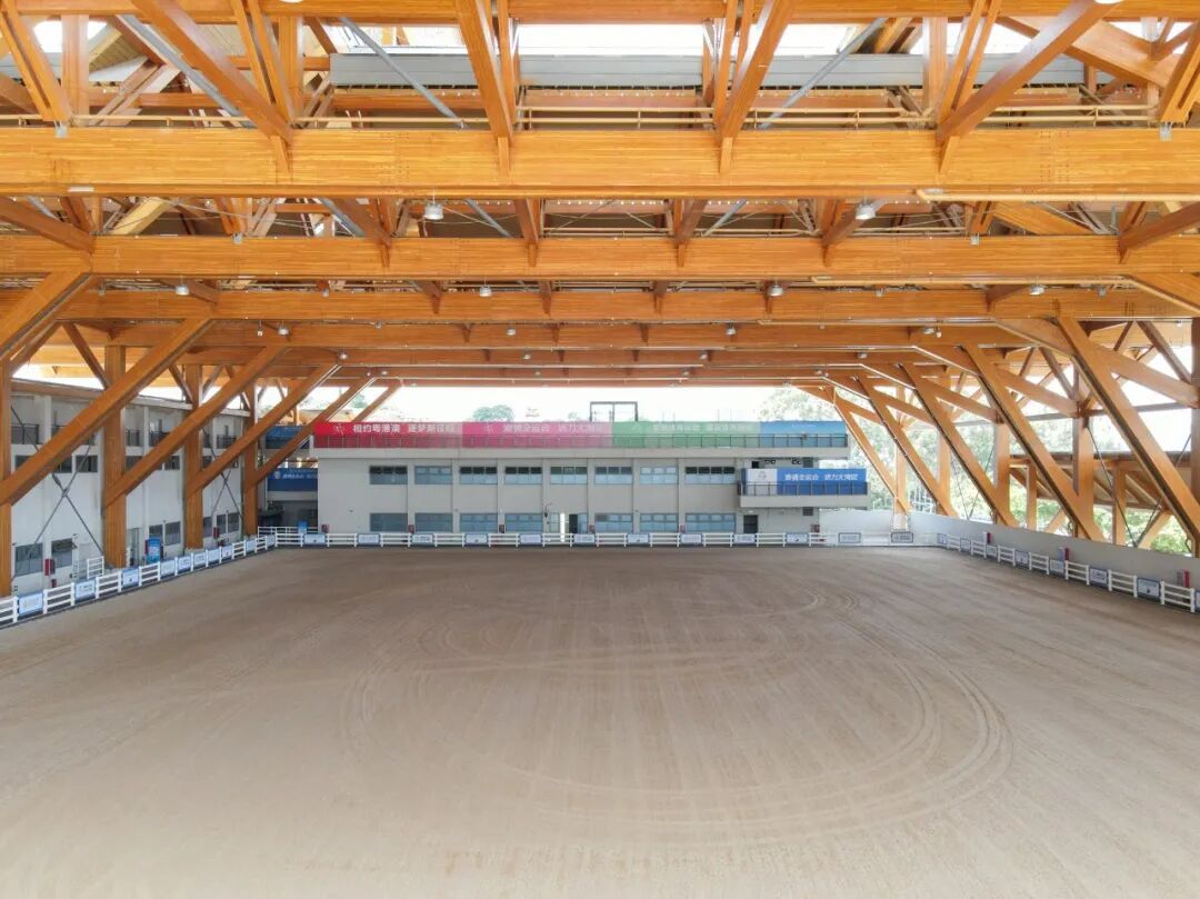 位于光明区光明街谈光灿路东侧的光明外洋马术中心将延续马术项琢磨盛装舞步、三项赛、形势扼制。这座场馆北接光明农场大不雅园,南邻大顶岭丛林公园与滑草场乐土,占地约5万平日米。场馆以钢木联结结构体系打造,最大木梁跨度达66米,是现在国内体育建筑中跨度最大的木结构工程。其假想灵感源于中国传统双坡屋顶造型,以“伞形”“树形”等多种形态优雅舒展,三角形屋顶敞口精巧引入当然透风与均匀漫射光辉,既优化了领路员与不雅众的体验,也成为耕种“马匹福利”的要害一环。